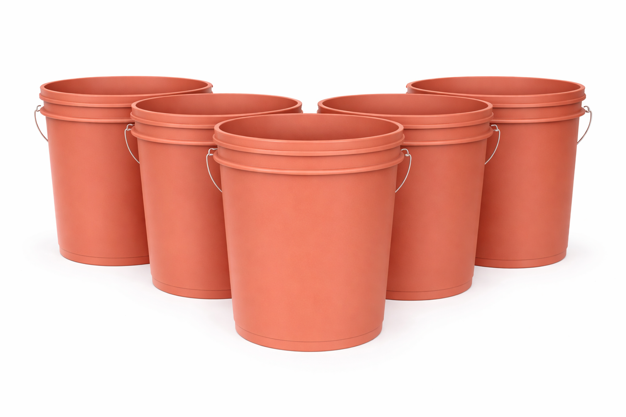 Earthtone Plastic 5 gallon/19 liter Bucket - set of 5 - Large Capacity Five Gallon Pails